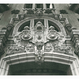 現在の建物は昭和2年に開店し、スパニッシュの中でもスペインバロックと呼ばれる過剰な装飾を特徴とする様式をとる。